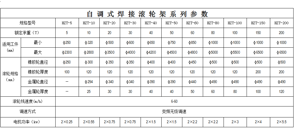 焊接滾輪架,是利用主動滾輪與焊件之間的摩擦力帶動工件旋轉的變位設備。滾輪架可根據工件直徑大小自動調節輪組的擺角,并能自動調心。滾輪架主要用于管道、容器、鍋爐、油罐等圓筒形工件的裝配或焊接,滾輪架當與焊接山東操作機、焊接電源配套時,可以實現工件的內外縱縫和內外環縫焊接。滾輪架充分吸取了國內外同類產品的優點,具有工藝、質量可靠、操作簡單、傳動噪聲低、工件回轉平穩等優點。滾輪架是實現壓力容器及筒狀工件焊接自動化、半自動化的必備設備。自調式滾輪架滾輪驅動采用變頻調速電動機,可按焊接規范進行無極調速,具有焊接速度調速范圍寬、轉動平滑性好、低速特性硬等特點。當對主、從滾輪架的高度作適當的調整后,也可進行錐體、分段不等徑回轉體的裝配與焊接。對于一些非圓長形焊件,若將其卡在特制的環形卡箍內,也可在焊接滾輪架上進行裝焊作業。特別是自調式、可調式焊接滾輪架系列